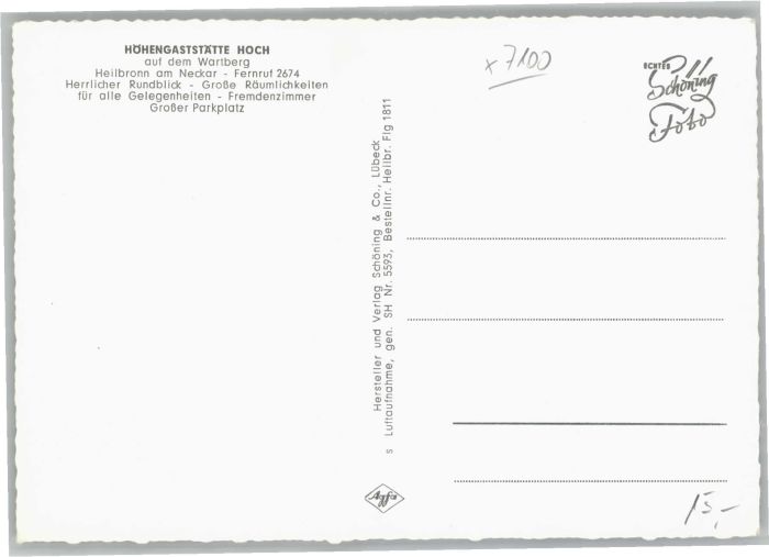 40704629 Heilbronn Neckar Heilbronn Fliegeraufnahme Wartberg Höhengaststätte Hoch * KatCode 11110008121000