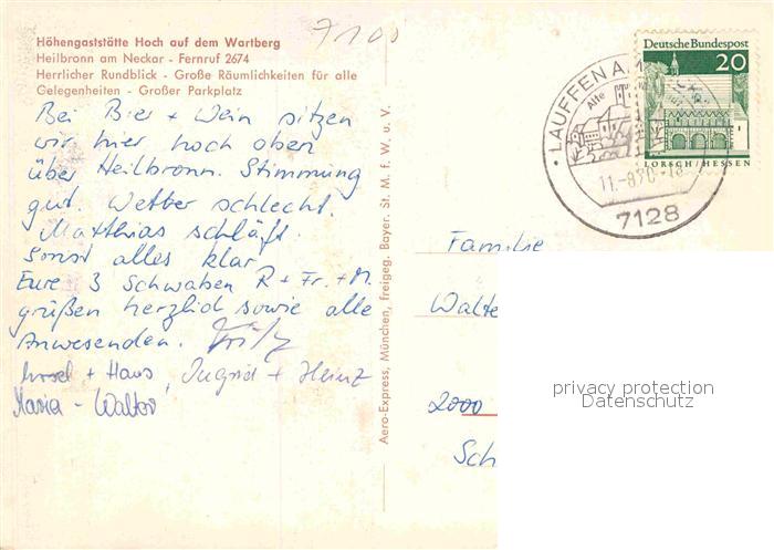 72831990 alte Postkarte Heilbronn Neckar Hoehengaststaette Hoch auf dem Wartberg postalisch gelaufen Erhaltung siehe scans [FriedD77] KatCode: 11110008121000