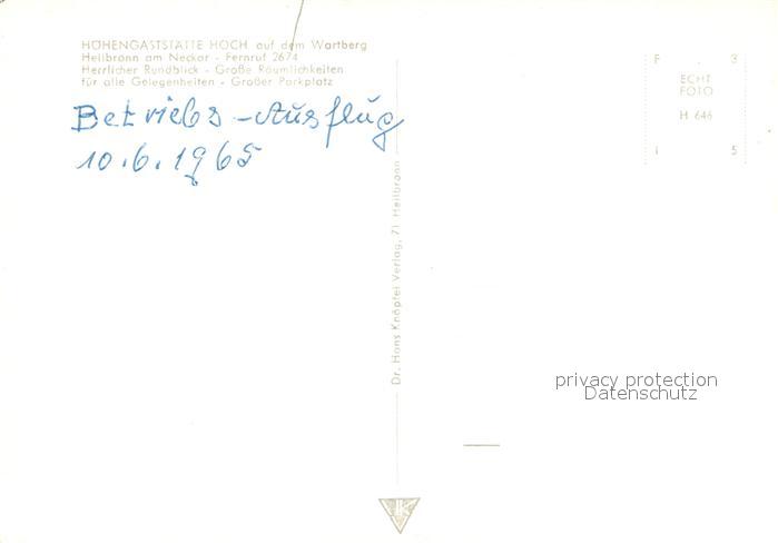 73167149 Heilbronn Neckar Hoehengaststaette Hoch Fliegeraufnahme postalisch nicht gelaufen Erhaltung siehe scans [WerneD78] KatCode: 11110008121000