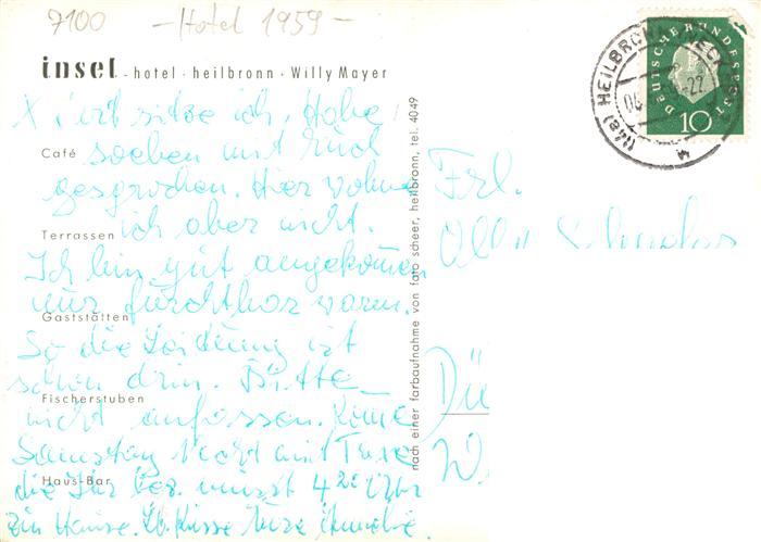 73893484 alte Postkarte Heilbronn Neckar Insel Hotel Heilbronn Freiterrasse postalisch gelaufen Erhaltung siehe scans [WerneD78] KatCode: 11110008121000