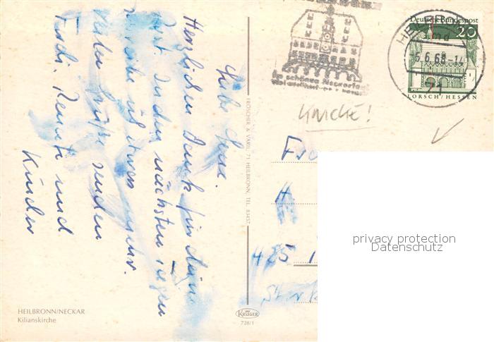 73814290 alte Postkarte Heilbronn Neckar Kilianskirche postalisch gelaufen Erhaltung siehe scans [FriedD77] KatCode: 11110008121000