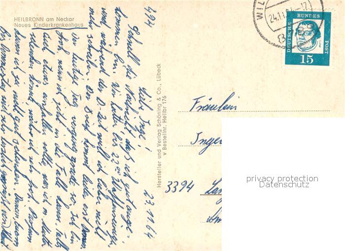73618463 alte Postkarte Heilbronn Neckar Kinderkrankenhaus postalisch gelaufen Erhaltung siehe scans [FriedD77] KatCode: 11110008121000