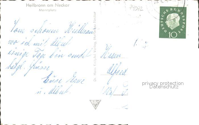 72178654 alte Postkarte Heilbronn Neckar Marktplatz Rathaus postalisch gelaufen Erhaltung siehe scans KatCode: 11110008121000