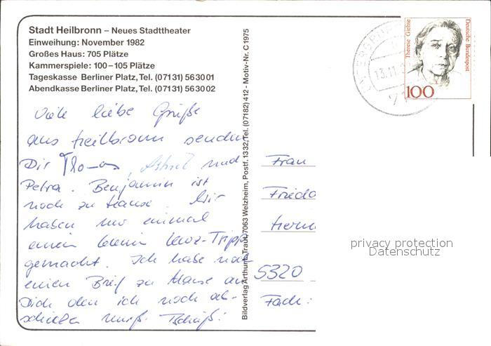 71928873 alte Postkarte Heilbronn Neckar Neues Stadttheater postalisch gelaufen KatCode: 11110008121000