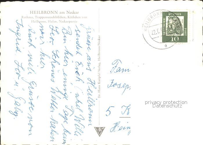 71935148 alte Postkarte Heilbronn Neckar Rathaus Treppenseeschoesschen Kaethchen von Heilbronn Hafen Neckarpartie postalisch gelaufen Erhaltung siehe scans KatCode: 11110008121000