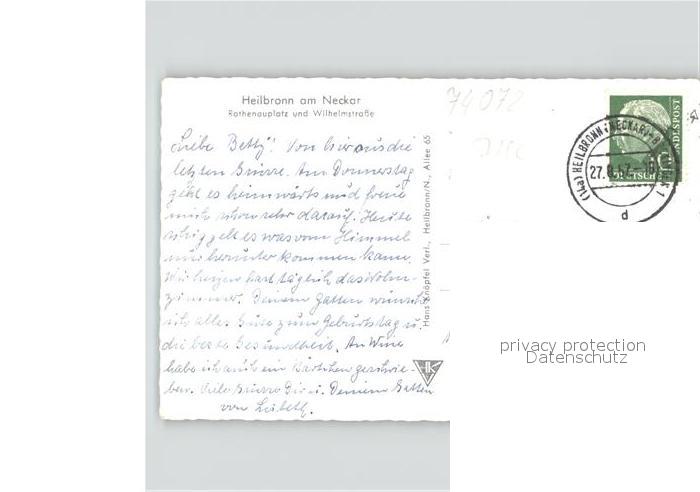 41620218 alte Postkarte Heilbronn Neckar Rathenauplatz und Wilhelmstrasse postalisch gelaufen Erhaltung siehe scans KatCode: 11110008121000