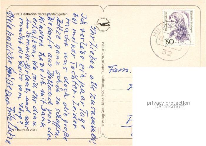 72929968 alte Postkarte Heilbronn Neckar Stadtgarten Fontaene Wasserspiele postalisch gelaufen Erhaltung siehe scans [WerneD78] KatCode: 11110008121000