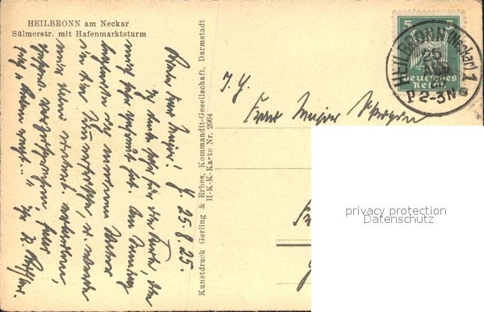 71840249 alte Postkarte Heilbronn Neckar Suelmerstrasse Hafenmarktsturm postalisch gelaufen Erhaltung siehe scans KatCode: 11110008121000
