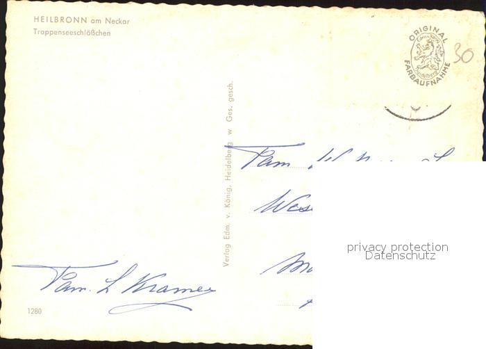 72254494 alte Postkarte Heilbronn Neckar Trappenseeschloesschen postalisch gelaufen Erhaltung siehe scans KatCode: 11110008121000
