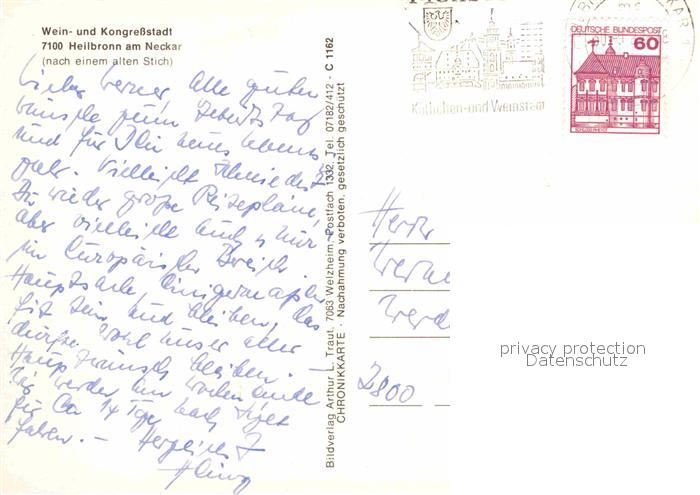 72803619 alte Postkarte Heilbronn Neckar Wein und Kongressstadt nach einem alten Stich Geschichte postalisch gelaufen Erhaltung siehe scans [FriedD77] KatCode: 11110008121000