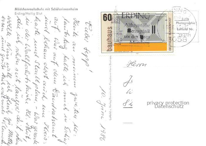 74096097 alte Postkarte Heilig Blut Maedchenrealschule mit Schuelerinnenheim Fliegeraufnahme postalisch gelaufen Erhaltung siehe scans [WerneD78] KatCode: 11110009177117