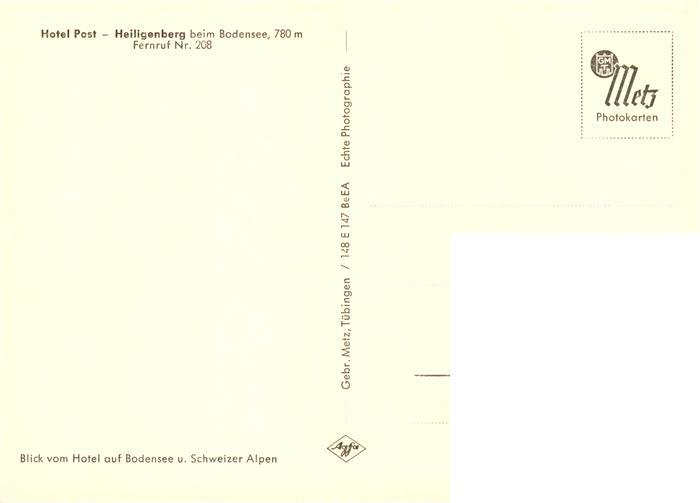 73863887 Heiligenberg Baden Hotel Post Blick auf Bodensee und Schweizer Alpen postalisch nicht gelaufen Erhaltung siehe scans [FriedD77] KatCode: 11110008435020