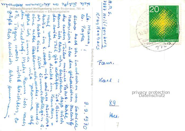 74028035 alte Postkarte Heiligenberg Baden Krankenhaus Erholungsheim postalisch gelaufen Erhaltung siehe scans [WerneD78] KatCode: 11110008435020