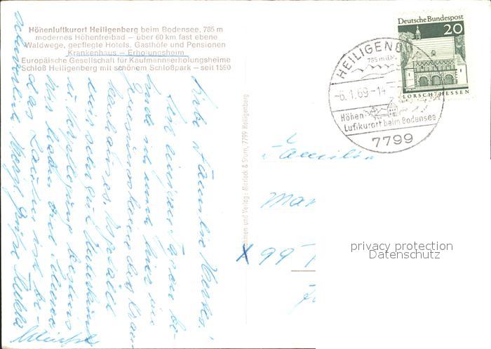 72333140 alte Postkarte Heiligenberg Baden Krankenhaus Postamt Haus Wagner Schloss Rittersaal postalisch gelaufen Erhaltung siehe scans KatCode: 11110008435020