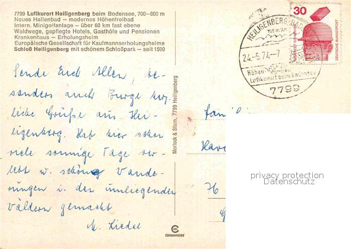 72738722 alte Postkarte Heiligenberg Baden Schloss Heiligenberg postalisch gelaufen Erhaltung siehe scans [LiesaD40] KatCode: 11110008435020