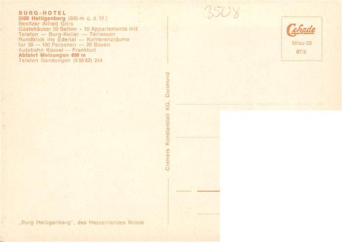 73935562 Heiligenberg Hessen Hotel Burg Heiligenberg Restaurant Luftaufnahme postalisch nicht gelaufen Erhaltung siehe scans [FriedD77] Frie Katcode 11110006634003