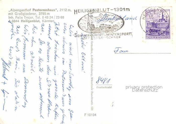 72889647 alte Postkarte Heiligenblut Kaernten Alpengasthof Pasterzenhaus postalisch gelaufen Erhaltung siehe scans [AndreD76] KatCode: 11390212020610