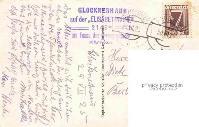 74033324 alte Postkarte HEILIGENBLUT Kaernten AT Berghaus Glocknerhaus mit Pasterze Gletscher Hohe Tauern postalisch gelaufen Erhaltung siehe scans [FriedD77] KatCode: 11390212020610