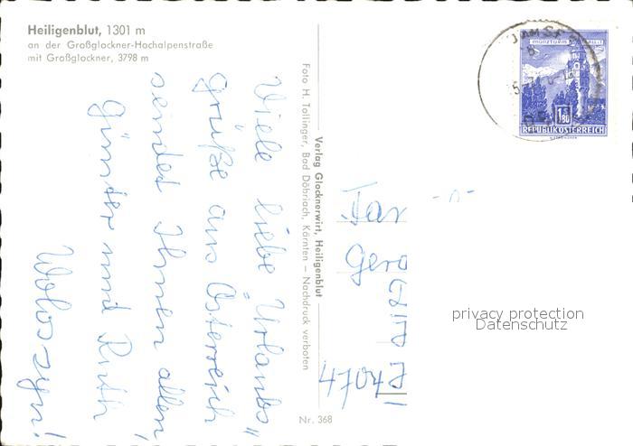 72446430 alte Postkarte Heiligenblut Kaernten Blick gegen Grossglockner postalisch gelaufen Erhaltung siehe scans KatCode: 11390212020610