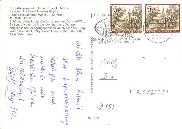 72469868 alte Postkarte Heiligenblut Kaernten Fruehstueckspension Goessnitzblick postalisch gelaufen Erhaltung siehe scans KatCode: 11390212020610