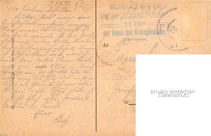43259001 alte Postkarte Heiligenblut Kaernten Glocknerhaus Grossglockner Gletscher Hohe Tauern Kuenstlerkarte postalisch gelaufen Erhaltung siehe scans [FriedD77] KatCode: 11390212020610