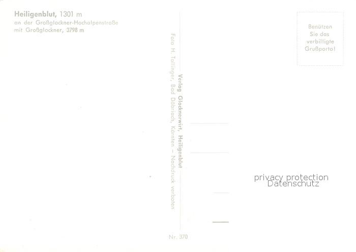 73025481 Heiligenblut Kaernten Grossglockner postalisch nicht gelaufen Erhaltung siehe scans [PaolaD17] KatCode: 11390212020610