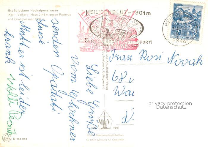 73363047 alte Postkarte Heiligenblut Kaernten Grossglockner Hochalpenstrasse Karl Volkert Haus gegen Pasterze und Grossglockner Hohe Tauern postalisch gelaufen Erhaltung siehe scans [FriedD77] KatCode: 11390212020610