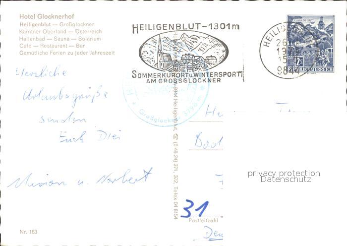 71972804 alte Postkarte Heiligenblut Kaernten Hotel Glocknerhof postalisch gelaufen Erhaltung siehe scans KatCode: 11390212020610