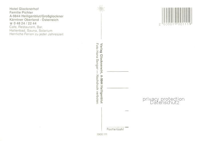73170457 Heiligenblut Kaernten Hotel Glocknerhof Kirche Grossglockner Hohe Tauern postalisch nicht gelaufen Erhaltung siehe scans [FriedD77] KatCode: 11390212020610