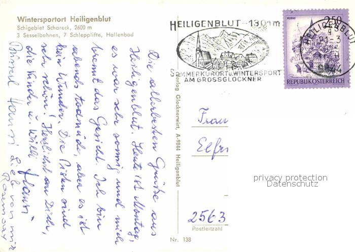 72627503 alte Postkarte Heiligenblut Kaernten Panorama Schigebiet Schareck postalisch gelaufen Erhaltung siehe scans [FriedD77] KatCode: 11390212020610