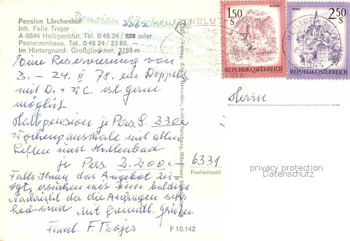 72849396 alte Postkarte Heiligenblut Kaernten Pension Laerchenhof postalisch gelaufen Erhaltung siehe scans [KathaD81] KatCode: 11390212020610