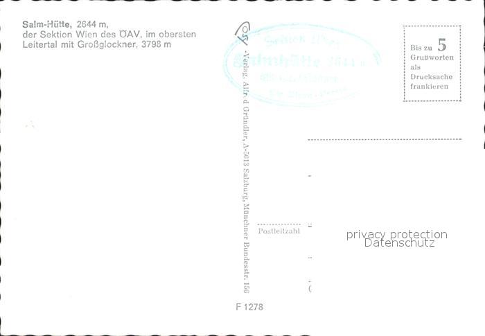 72116633 Heiligenblut Kaernten Salmhuette Berghaus oeAV Leitertal Grossglockner Hohe Tauern postalisch nicht gelaufen Erhaltung siehe scans KatCode: 11390212020610