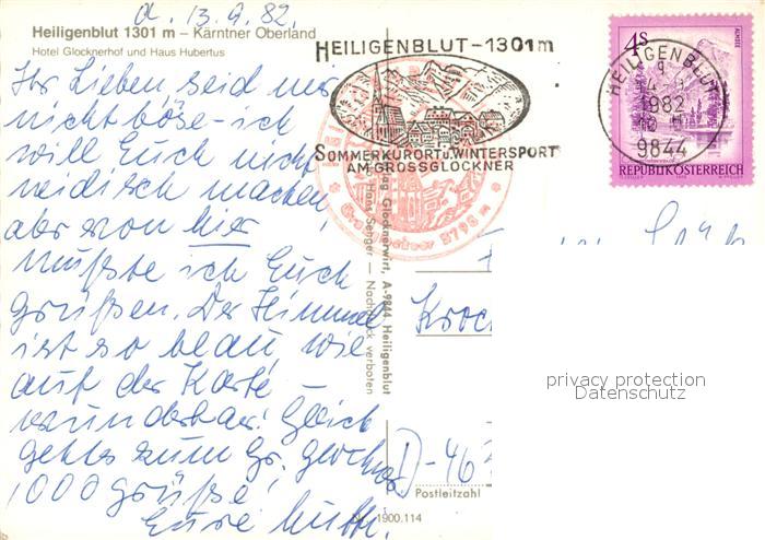 73362989 alte Postkarte Heiligenblut K?rnten Hotel Glocknerhof und Haus Hubertus postalisch gelaufen Erhaltung siehe scans [LiesaD40] KatCode: