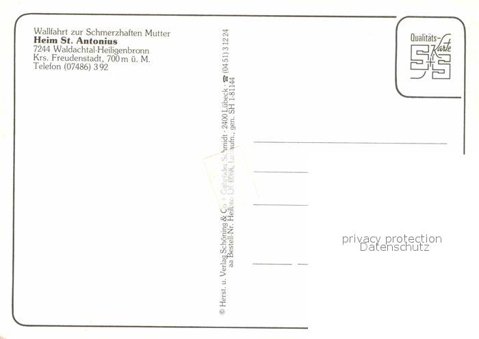 72825979 Heiligenbronn Waldachtal Wallfahrt zur Schmerzhaften Mutter postalisch nicht gelaufen Erhaltung siehe scans [AndreD76] KatCode: 11110008237074