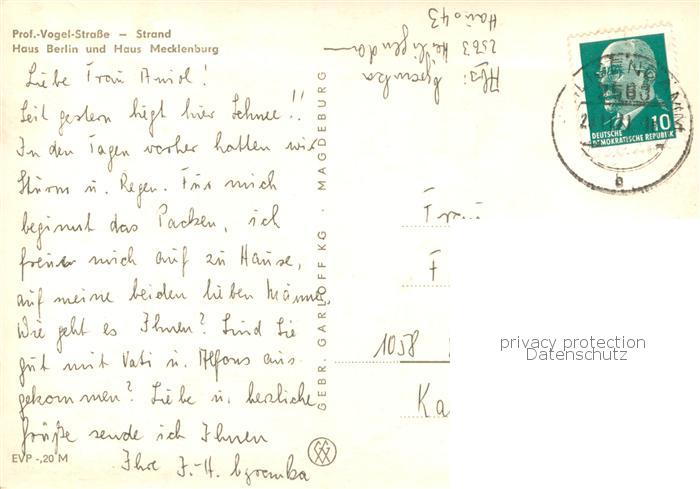 73752715 alte Postkarte Heiligendamm Ostseebad Prof Vogel Strasse Strand Haus Berlin und Haus Mecklenburg postalisch gelaufen Erhaltung siehe scans [WerneD78] KatCode: 11110013051004