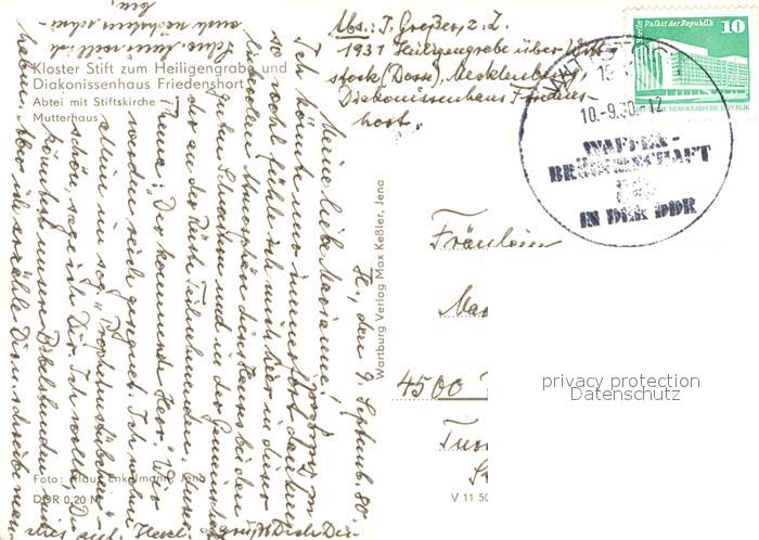 73549890 alte Postkarte Heiligengrabe Kloster Stift Diakonissenhaus Friedenshort Abtei mit Stiftskirche Mutterhaus postalisch gelaufen Erhaltung siehe scans [WerneD78] KatCode: 11110012068181