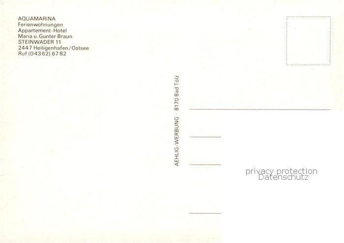 73858143 Heiligenhafen Ostseebad Aquamarina Ferienwohnungen Appartement Hotel Gastraeume Zimmer postalisch nicht gelaufen Erhaltung siehe scans [WerneD78] KatCode: 11110001055021