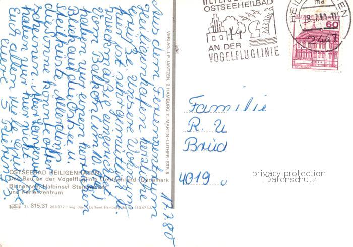 73321604 alte Postkarte Heiligenhafen Ostseebad Binnensee Halbinsel Steinwarder und Ferienzentrum Fliegeraufnahme postalisch gelaufen Erhaltung siehe scans [WerneD78] KatCode: 11110001055021