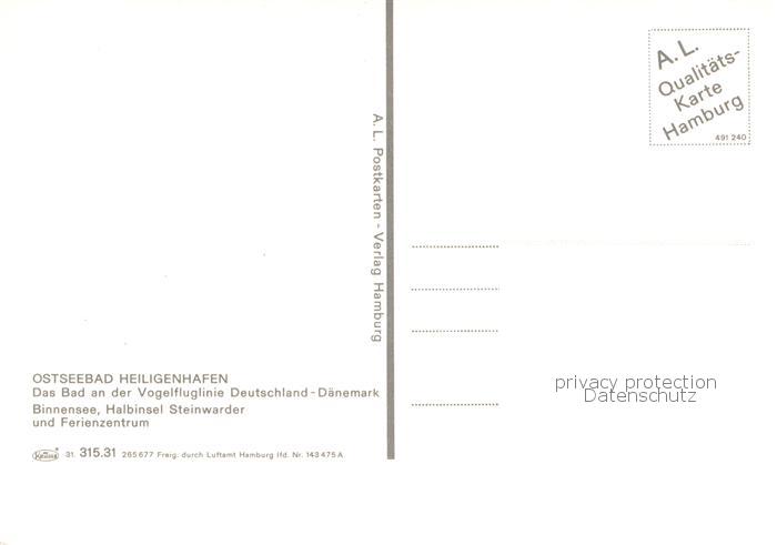 73760731 Heiligenhafen Ostseebad Binnensee Halbinsel Steinwarder und Ferienzentrum Fliegeraufnahme postalisch nicht gelaufen Erhaltung siehe scans [FriedD77] KatCode: 11110001055021