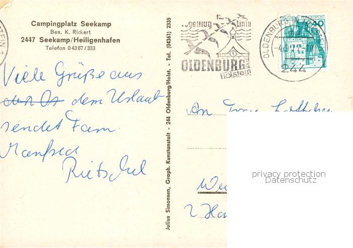 73813720 alte Postkarte Heiligenhafen Ostseebad Campingplatz Seekamp Teilansichten postalisch gelaufen Erhaltung siehe scans [WerneD78] KatCode: 11110001055021