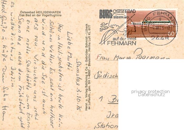 73657121 alte Postkarte Heiligenhafen Ostseebad Das Bad an der Vogelfluglinie Fliegeraufnahme postalisch gelaufen Erhaltung siehe scans [FriedD77] KatCode: 11110001055021