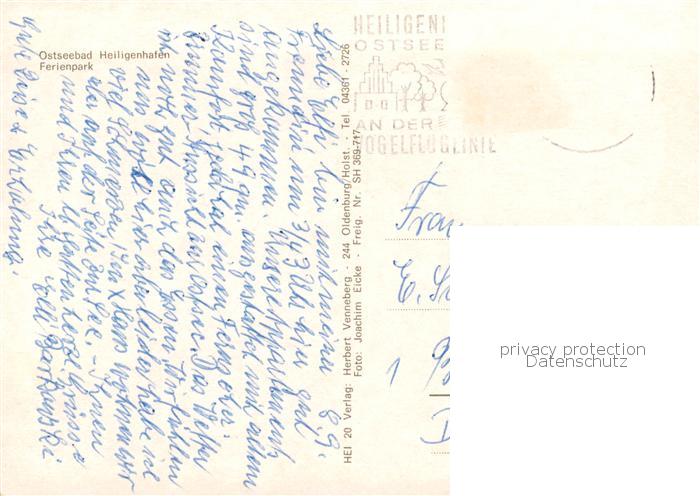 73834495 alte Postkarte Heiligenhafen Ostseebad Ferienpark Fliegeraufnahme postalisch gelaufen Erhaltung siehe scans [FriedD77] KatCode: 11110001055021
