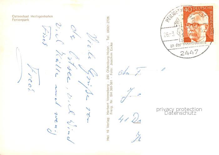 73813724 alte Postkarte Heiligenhafen Ostseebad Ferienpark Fliegeraufnahme postalisch gelaufen Erhaltung siehe scans [WerneD78] KatCode: 11110001055021