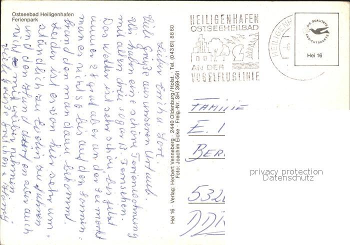 72557343 alte Postkarte Heiligenhafen Ostseebad Ferienpark Luftbild postalisch gelaufen Erhaltung siehe scans [KathaD79] KatCode: 11110001055021