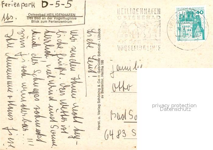 73111971 alte Postkarte Heiligenhafen Ostseebad Ferienzentrum postalisch gelaufen Erhaltung siehe scans [NatalD47] KatCode: 11110001055021