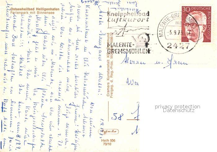 72716547 alte Postkarte Heiligenhafen Ostseebad Fliegeraufnahme Ferienpark mit Binnensee postalisch gelaufen Erhaltung siehe scans [LiesaD40] KatCode: 11110001055021