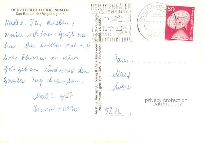 73757155 alte Postkarte Heiligenhafen Ostseebad Fliegeraufnahme Hafen postalisch gelaufen Erhaltung siehe scans [LiesaD40] KatCode: 11110001055021