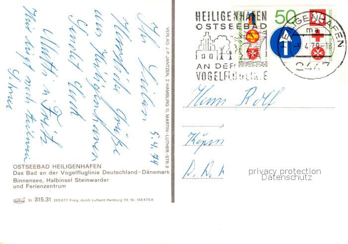 73105483 alte Postkarte Heiligenhafen Ostseebad Fliegeraufnahme mit Halbinsel Steinwarder postalisch gelaufen Erhaltung siehe scans [WerneD78] KatCode: 11110001055021