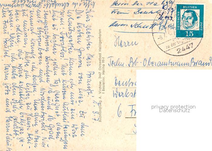 73021359 alte Postkarte Heiligenhafen Ostseebad Fliegeraufnahme Strand Hafen postalisch gelaufen Erhaltung siehe scans [NatalD47] KatCode: 11110001055021