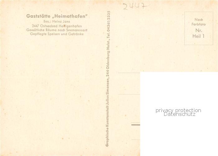73864922 Heiligenhafen Ostseebad Gaststaette Heimathafen Gastraeume Bar postalisch nicht gelaufen Erhaltung siehe scans [WerneD78] KatCode: 11110001055021